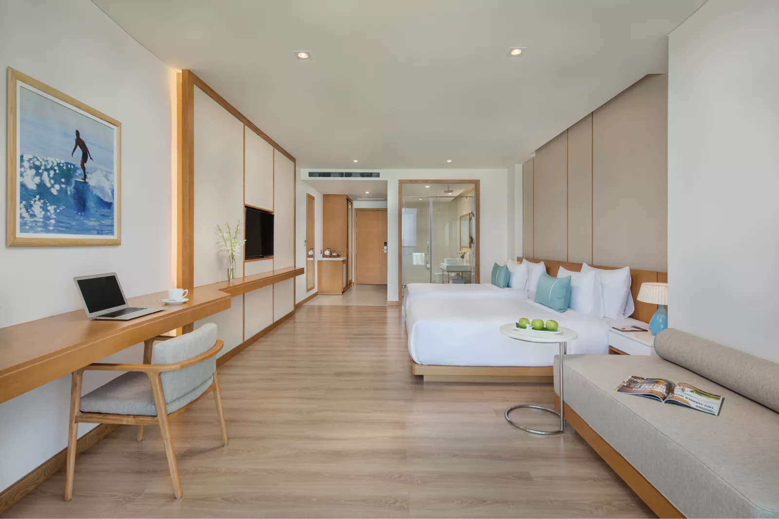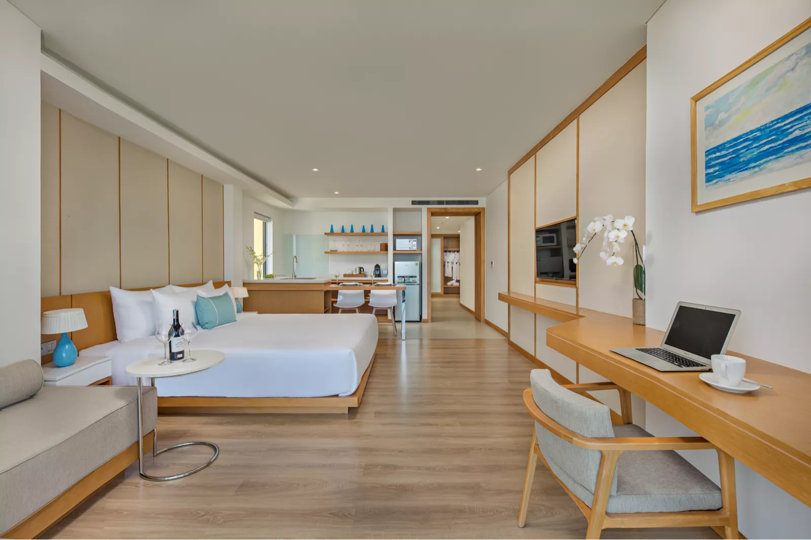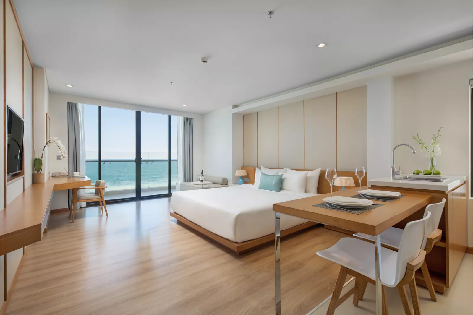 Căn hộ Family Suite đem lại hướng nhìn có thể chiêm ngưỡng vẻ đẹp toàn cảnh của biển Mỹ Khê.